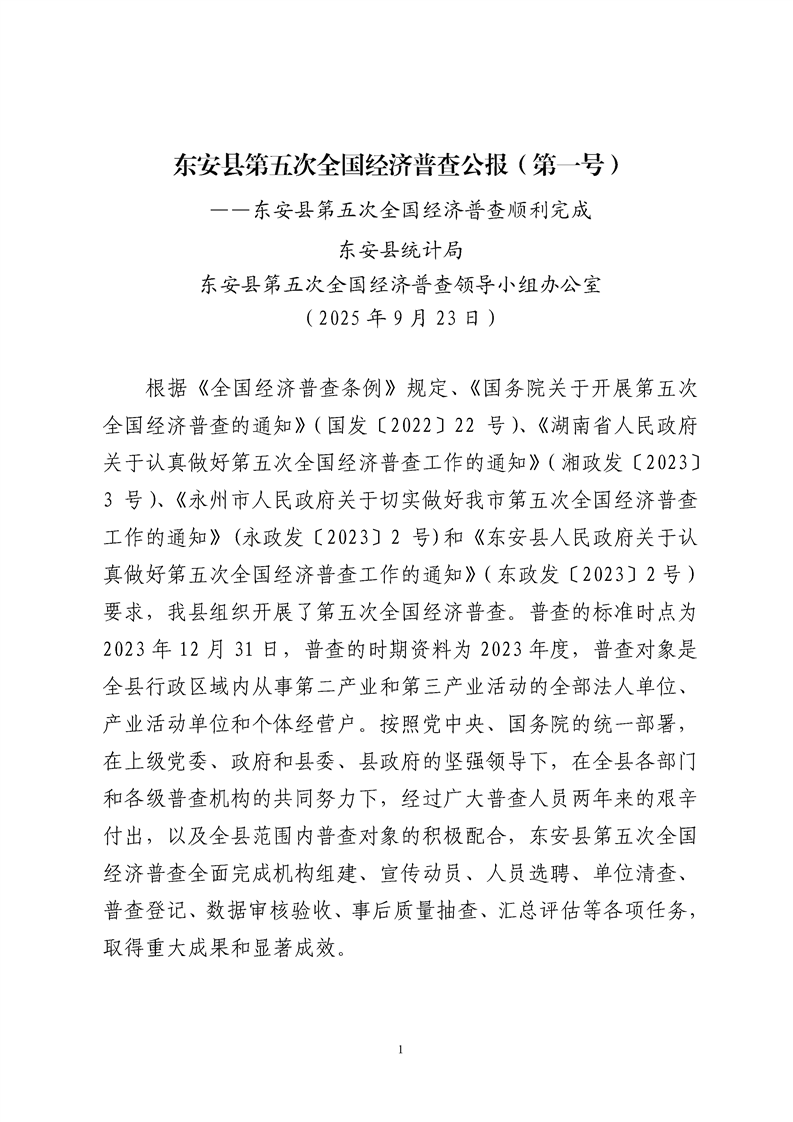 东安县第五次全国经济普查公报-下载和记娱乐